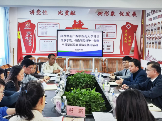 3月20日,针灸推拿学院联合骨伤学院共同前往百色平果铝医院开展“访企拓岗促就业”专项行动,针灸推拿学院党委书记韦维、骨伤学院党委书记蒋闽义、针灸推拿学院学办主任姚嘉及骨伤学院辅导员温健参加活动。