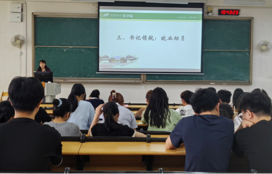 为更好地面对医药行业转型升级对人才素质提出的新要求,药学院于5月21日组织召开2025届毕业生就业推进会暨返校班会。学院党政领导、全体辅导员及400余名学生参会。