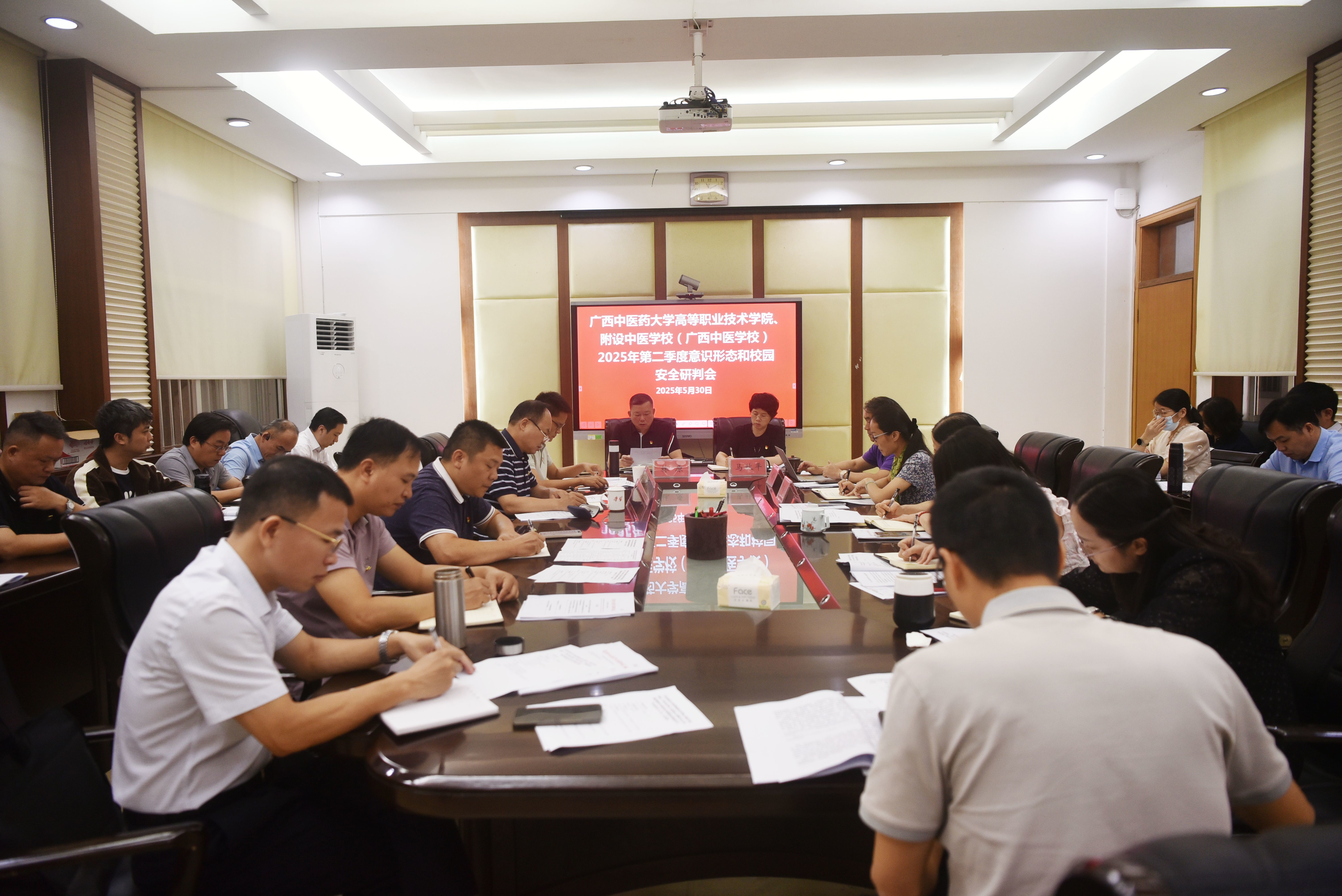 5月29日上午,高等职业技术学校、附设中医学校在东葛校区一楼会议室召开深入贯彻中央八项规定精神学习教育读书班暨党委理论学习中心组学习(扩大)会,深入学习领会中央八项规定及其实施细则精神和习近平总书记关于深入贯彻中央八项规定精神学习教育最新重要讲话精神,部署院(校)相关工作。院(校)党委书记林原主持会议并作总结讲话,党委副书记、院(校)长马秋平,党委副书记邓刚,副院(校)长韦文朗、黄勇,纪委书记谭丽云作交流发言。各党支部书记及全体中层干部参加会议。