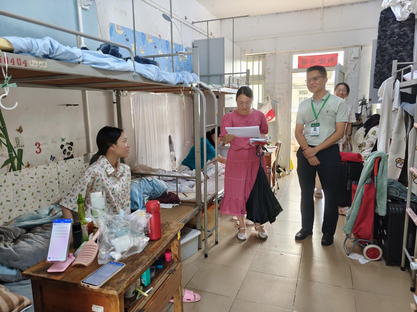 6 月13日下午,高等职业技术学院组织开展“深入宿舍听心声,精准帮扶促就业”专项活动。学院党委副书记邓刚与毕业班辅导员陈泉江、李冰莹一同走进明秀校区学生宿舍,与2025届针灸推拿、中药学(校企合作)、药学(校企合作)、护理学、口腔医学等专业毕业生面对面交流,关心学生就业情况,为毕业生送上温暖与指导。
