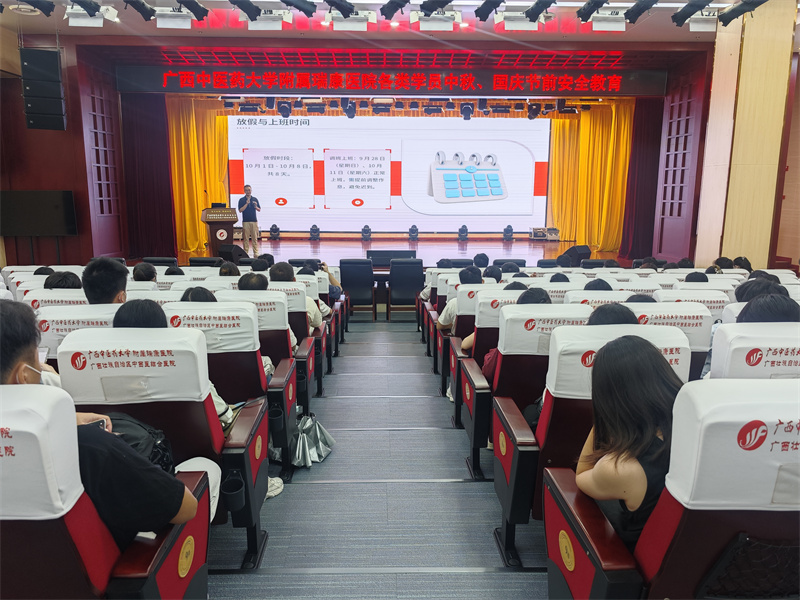 9月28日下午,瑞康临床医学院在B座10楼学术报告厅召开中秋、国庆节前安全教育大会,145名实习生小组长、专硕研究生及规培学员班委参加会议。