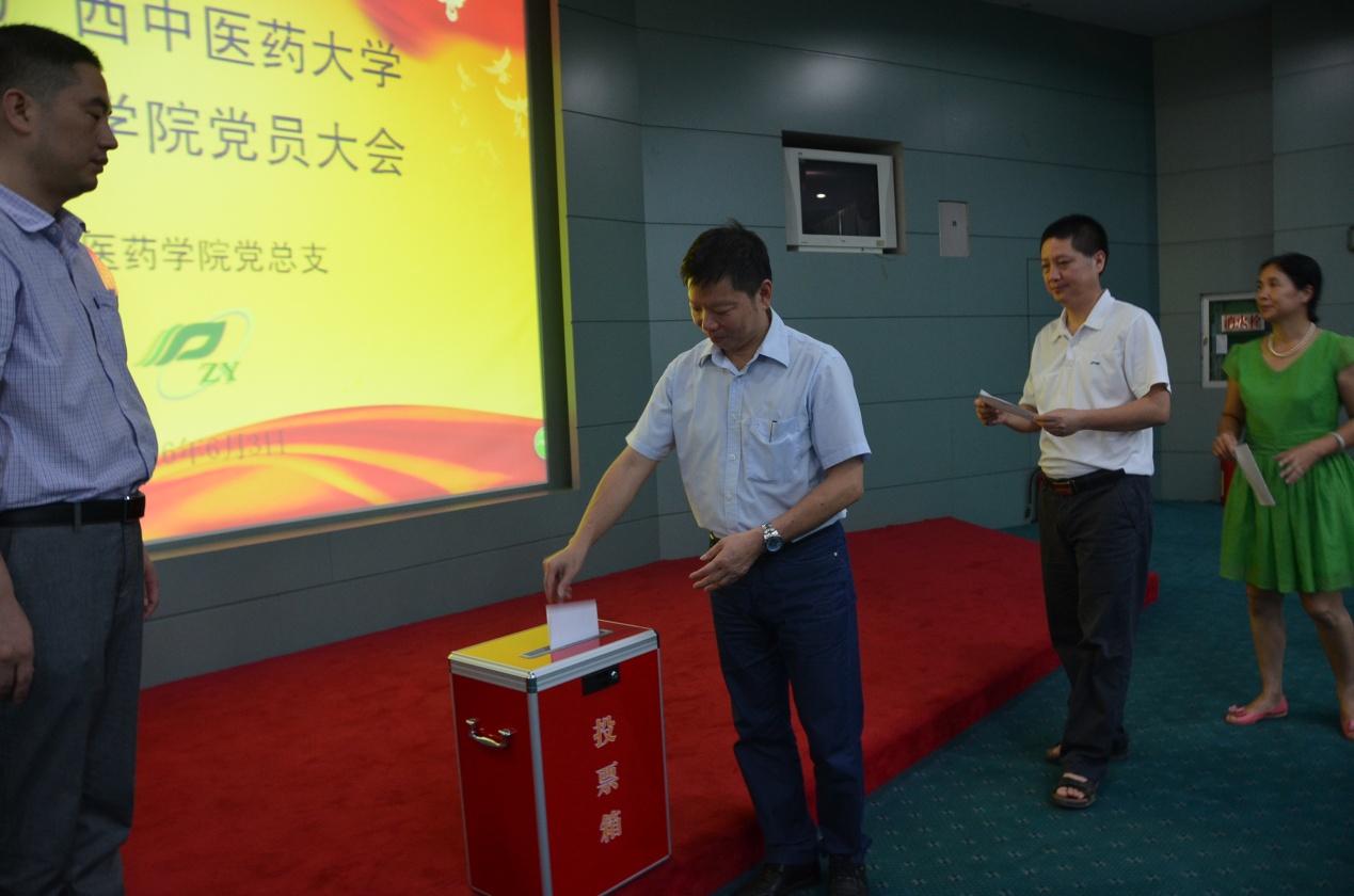 大会在庄严的国歌声中隆重开幕,大会首先听取了张煜书记对壮医药学院两个党支部、瑶医药学院教工党支部的基本情况和大会的会议议程的进行了简短介绍。大会还审议并原则通过了《中共壮医药学院总支部委员会选举办法(草案)》和监票人、计票人名单,根据计票人对与会选举人投票情况的统计结果和大会通过的选举办法的相关规定,张煜、林辰、李彤、韦杏、宋宁五名同志当选为壮医药学院党总支部委员会委员。同时选举产生了中共壮医药学院总支部书记、副书记,张煜同志当选为中共壮医药学院总支部书记,林辰同志中共壮医药学院总支部副书记。根据选举程序,选举结果将提交校党委审批、确认。