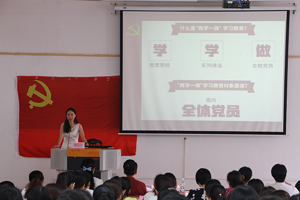 大会首先由陈日兰副书记为全体学生党员讲解“两学一做”的内容以及党员应该如何在实际生活中践行“两学一做”,为全体党员今后在生活、工作中成为合格党员指明了方向。
