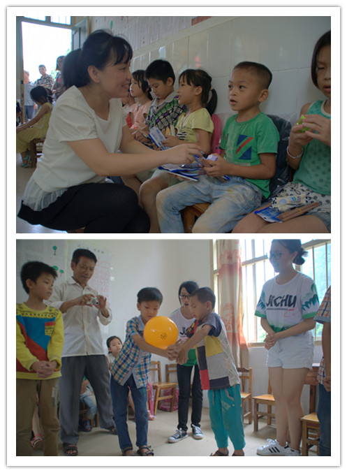 “关爱留守儿童服务队”成员也积极行动,到达南圩镇四联村开展“关爱留守儿童,助力教育精准扶贫”为主题的活动,给留守儿童带去了充实快乐的时光。活动包括医疗卫生和安全急救知识宣讲、做游戏、文艺表演、传统文化知识竞猜和分发奖品五个环节。活动刚开始,孩子们表现得比较拘谨,但是在成员们的共同努力下,孩子们都积极加入了活动当中。特别是在三字经、弟子规等传统文化知识有奖竞答比赛环节,孩子们表现活跃积极抢答。孩子们在游戏中潜移默化接受中国传统文化熏陶,有利于帮助孩子们树立正确的人生观、价值观、世界观,用德行去奉献社会,造福国家。考虑到孩子们的实际情况,基础医学院准备了丰富的文具、球类等用品送予他们,方便了孩子们的学习生活。整个活动氛围轻松愉悦,直至活动结束孩子们恋恋不舍,期待着我们的下次到来。
