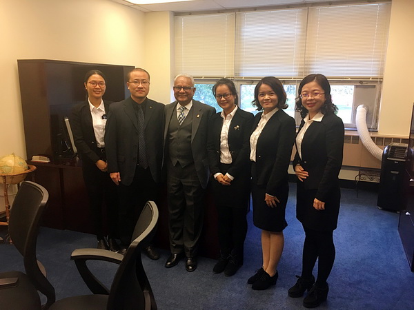美国当地时间9月19日上午8点20分,我院教师一行在纽约州布法罗中美文化交流中心执行董事陈树清博士的带领下,在美国督尤维尔学院二楼会议室受到美国督尤维尔学院护理学院Arup K.Sen副院长及老师们的热烈欢迎并举行座谈会。两院教师就中美双方护理本科教学课程设置,学时分配及护理学硕士、博士研究生培养进行深入交流和探讨。会后,5名教师在护理学院Baxter教授和实验室的主管老师的带领下参观了护理实训中心和高端模拟仿真实验室,并在相关人员陪同下领略了督尤维尔学院的校园文化。