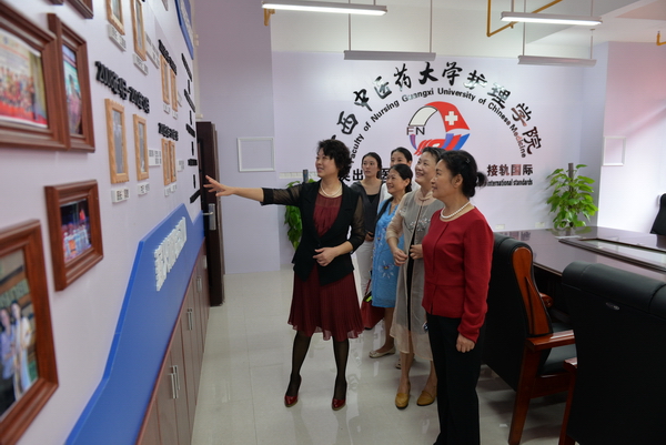 洪净巡视员对我院护理实践教学基地的建设给予充分的肯定。她指出,护理学院作为广西最早开展高等护理教育的唯一一所培养具有中医特色高级护理人才的院校之一,要适应新形势和新常态,在护理人才培养方面不断创新,培养更多市场紧缺、社会急需的,人文底蕴深厚、专业知识扎实、护理技能强的护理专业人才,为区域社会和经济发展做出贡献。