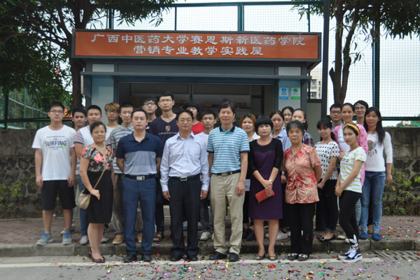 11月22日上午,星空彩票老版本下载赛恩斯新医药学院“营销专业教学实践屋”揭牌仪式在球场东侧举行。出席仪式的领导有徐方明书记、梁天坚副书记、副院长、杜惠娟副院长、叶绘晟副院长。药学系主任江海燕携同教师及2014级、2015级市场营销专业学生参加了揭牌仪式。