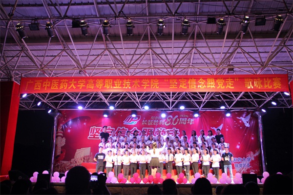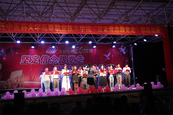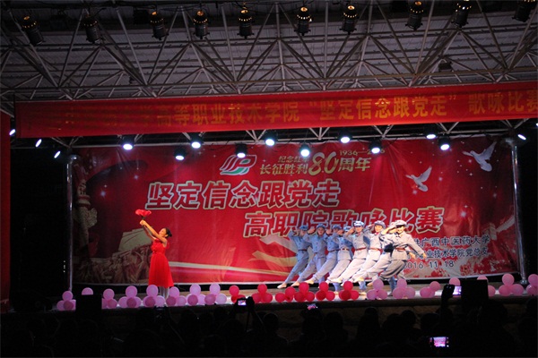 为迎接纪念我校恢复办学60周年,弘扬爱党爱国精神,丰富校园文化生活。2016年11月18日晚,高职院党总支在明秀校区举办了主题为“坚定信念跟党走”的歌咏比赛。高职院全体在校师生党员、入党积极分子与各合作办学企业嘉宾一同欣赏了这场精彩的歌咏比赛。