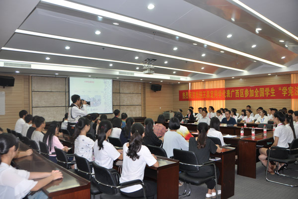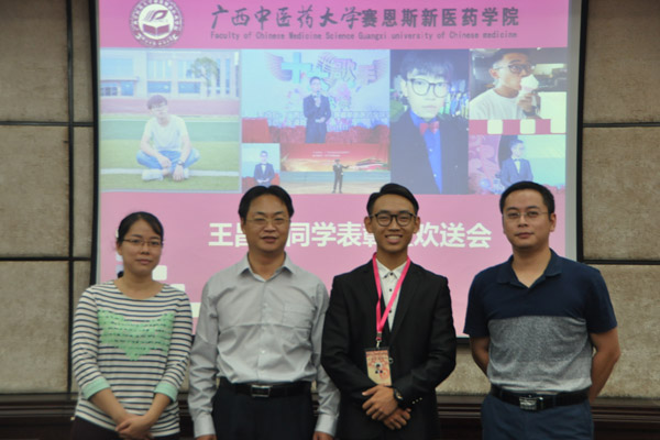 星空彩票老版本下载赛恩斯新医药学院2015级中医专业7班的王昌定同学在教育部主办 “学宪法,讲宪法”演讲比赛广西区复赛中脱颖而出,荣获高校组第一名,即将于近日代表广西高校赴北京参加总决赛。11月22日下午,学院领导、师生代表以及学院大学生通讯社(以下简称“学通社”)全体成员在教学楼八楼会议室,为王昌定同学召开了表彰大会暨欢送会。学院党委书记徐方明,副院长叶绘晟出席了此次大会。各年级辅导员及团学联优秀学生代表应邀共同参加了大会。
