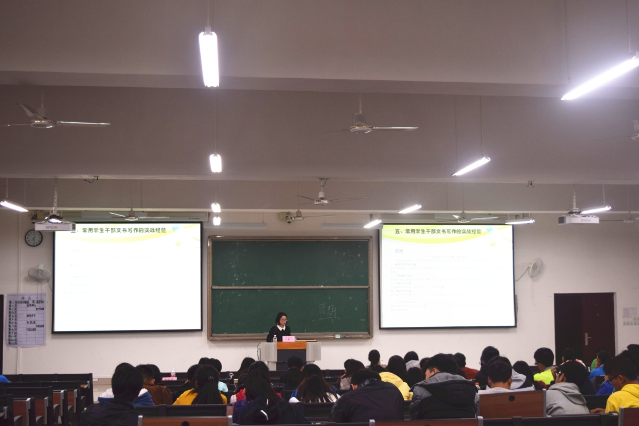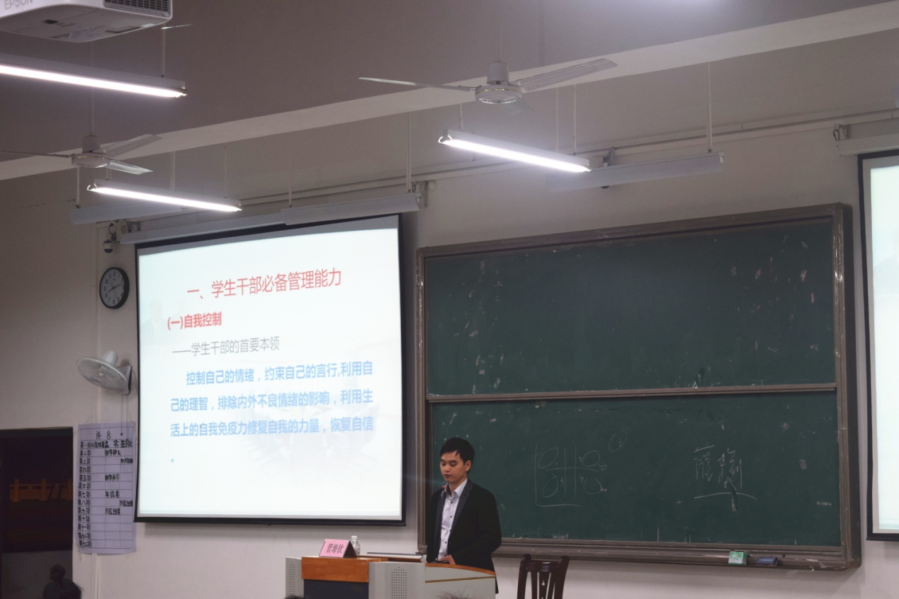 培训课程由此拉开了序幕。首先,校网络中心王斌老师为现场同学讲解摄影基础知识,介绍了拍摄技巧,并进行了照片点评。王斌老师的精彩讲解得到了同学们的一致好评。然后,李豫萍副书记就人际沟通这一主题,讲解了与人交流的技巧和应注意的事项,并强调了学干与同学之间有效沟通的重要性,即只有深入群众、了解情况才能更好的合作。李豫萍副书记还在讲解过程中举了大量例子,课堂生动活泼,通俗易懂。接着,王金兰老师对学干进行了文案策划与写作的培训,对学干的文学素养、写作能力的提升以及工作有很好的促进作用。最后由管海钦老师进行学生干部管理能力培训,培养学干的领导和管理能力,对药学院的工作开展以及管理起到重要作用。