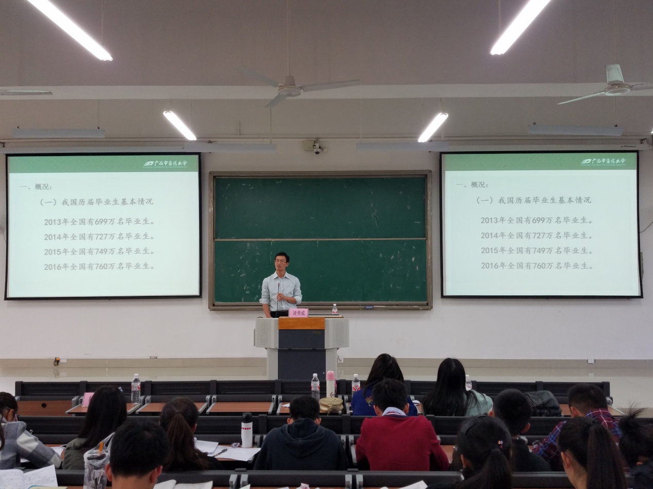 12月6日下午14点,学干培训于仙葫校区教学楼1栋101教室继续进行。首先由研究生团委书记杨思源老师进行主题为“时间规划的艺术”的培训。杨思源老师通过著名的四象限理论向同学们讲述了时间规划的重要性,并通过现场的小游戏介绍了处理事情的正确步骤与方法,同时向同学们推荐了规划时间的四样有效工具以及三本书籍。药学院学办主任凌勇威老师进行了有关就业方面的培训,通过“双选会”向同学们分析了各企业及岗位的情况,介绍了我院2017届毕业生基本情况,并剖析了目前就业工作存在的困难和问题,让学生更了解就业市场。