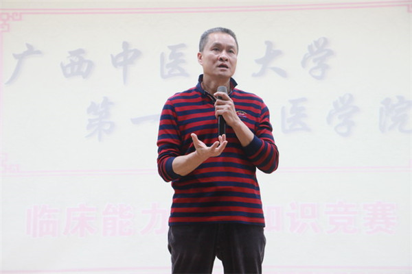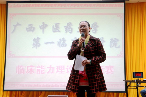 本次大赛有幸邀请到第一临床医学院副院长钟远鸣、基础医学院中医基础理论及内经教研室主任蒋筱、方剂教研室主任杨力强、中诊教研室主任祝美珍、第一临床医学院教学部主任黄彬、副主任杜娟娇、区锏担任评委,教学党总支书记罗之瑜及各班辅导员出席了本次大赛,第一临床医学院11个中医专业班级同学参加本次竞赛。