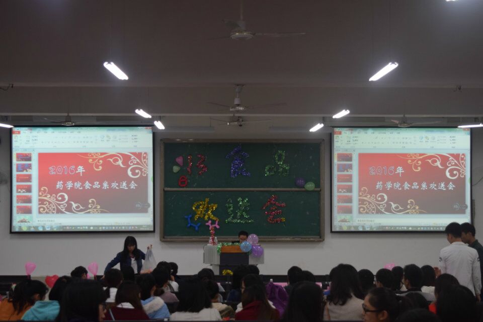 时光似流水,桃李终结实。12月11日晚19时,一年一度的药学院食品科学系毕业生欢送晚会在仙葫校区教学楼1-101隆重举行。全体食品类专业在校生及药学院其他各班级代表参加了本次欢送晚会。谢文佩和罗湘老师应邀出席,并为即将踏上社会的食品学子们送上祝福。