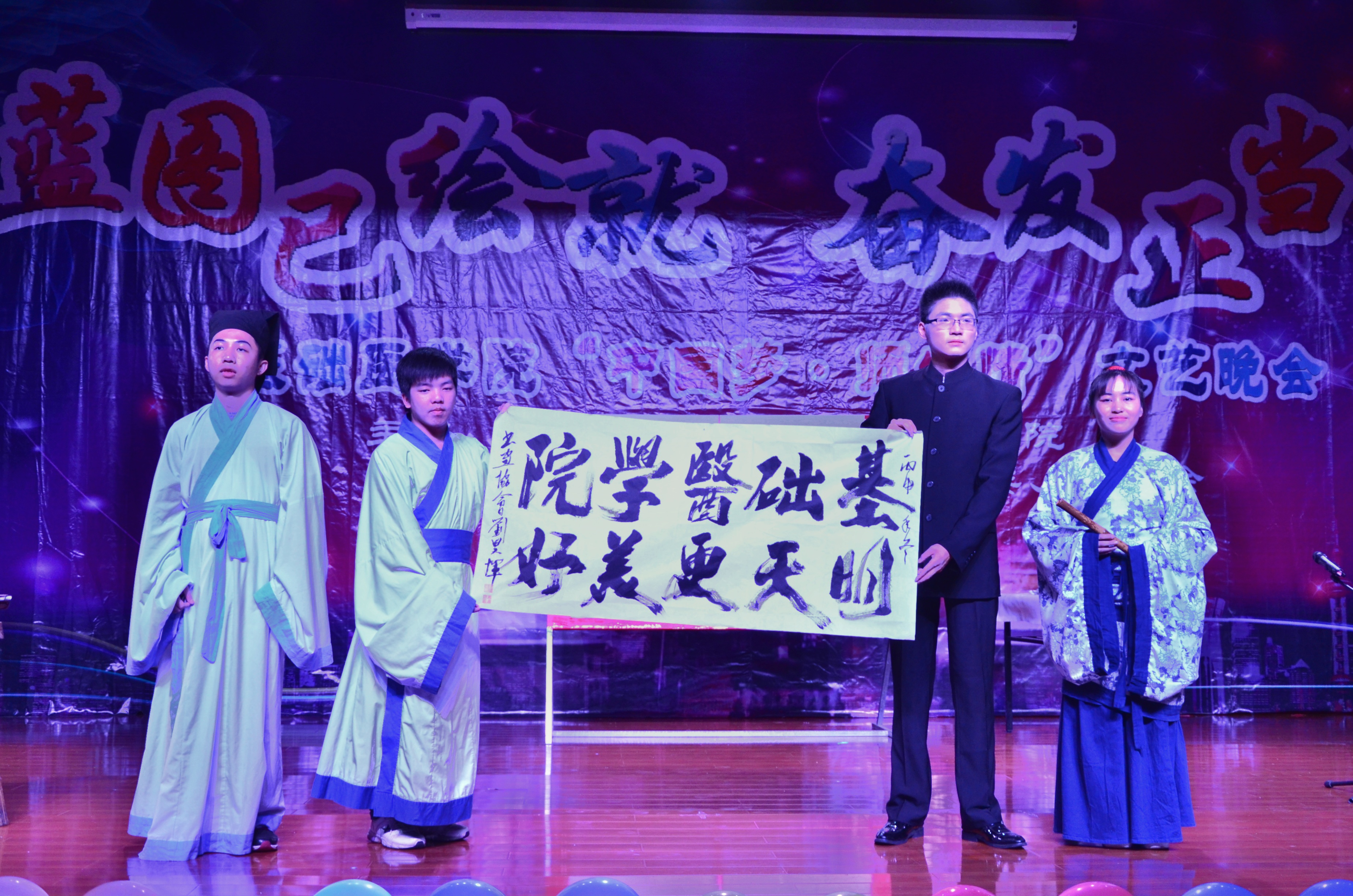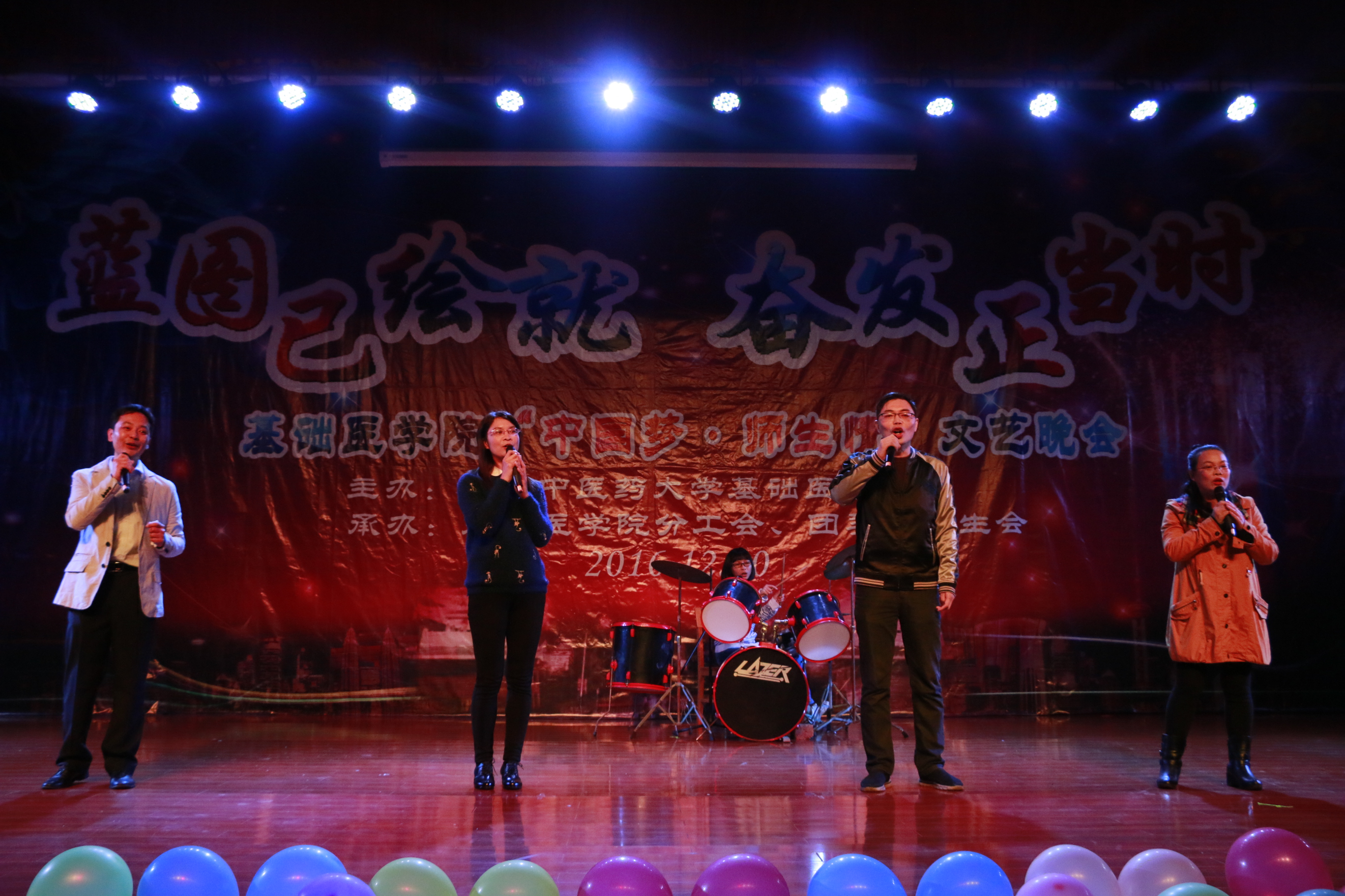 2016年12月20日晚,星空彩票老版本下载仙葫校区大学生活动中心礼堂华灯璀璨,掌声雷动,基础医学院“蓝图已绘就,奋发正当时—中国梦•师生情”文艺晚会在此隆重上演。在辞旧迎新之际,师生欢聚一堂,传承华夏文明,抒发爱国豪情,唱响伟大中国梦,再续师生情缘。