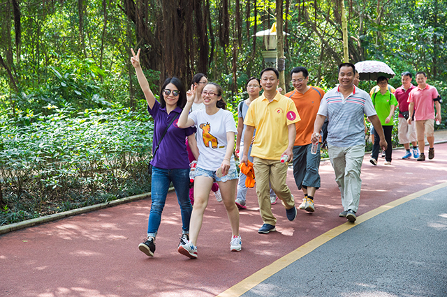 健步走一路上欢声笑语