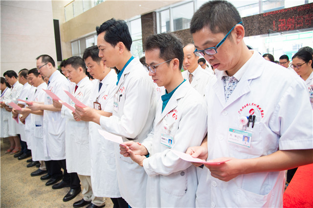 “凡大医治病,必当安神定志……”活动在琅琅《大医精诚》读书声中拉开帷幕,医院全体领导和各科医生代表一起重温了医学经典著作。
