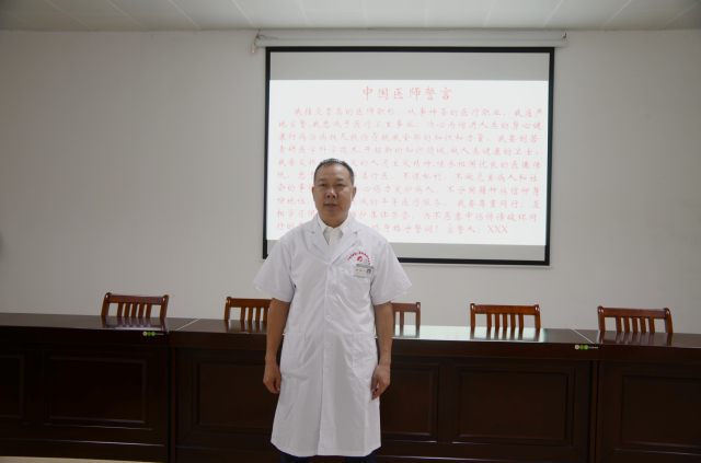 宣誓活动由陆秀伟副院长领读誓词,庄严的誓词,字字千钧,铿锵而豪迈,与会医师纷纷表示,将把中国医师誓言始终如一地奉行下去,在本职岗位上恪尽职守、服务奉献,为群众提供更加优质高效的医疗服务。