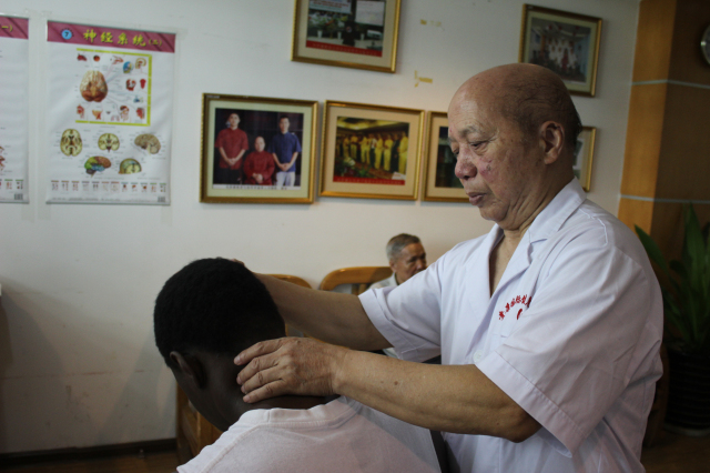 国医大师,世界整脊手法联合会主席韦贵康教授在诊治病人