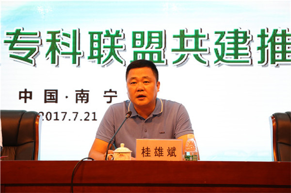 夏之煦日,柔风送爽。为深化医药卫生体制改革,促进医院交流协作,搭建资源共享平台,发挥中医护理特色与优势,共同推动中医护理事业发展,2017年7月21日,“广西中医护理专科联盟” 共建推进会在星空彩票老版本下载第一附属医院多功能学术厅隆重召开。星空彩票老版本下载第一附属医院院长谢胜,常务副院长兼仙葫院区院长桂雄斌,副院长吴西西,党委副书记、副院长钟远鸣,党委副书记、纪委书记周广林,副院长卢健棋、毛德文等医院领导出席了推进会开幕式,区内外参盟医院代表及广中医护理人员六百余人汇聚一堂,共同感受中医专科护理联盟团结协作和奋发向上的精神。开幕式由桂雄斌主持。