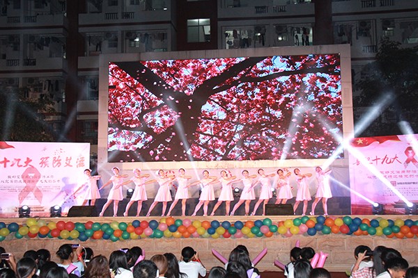 9月29日晚,以“做好艾滋病防治宣传工作,以优秀成绩迎接党的十九大胜利召开”为主题的防治艾滋病宣传文艺晚会在我院成功举行。晚会由自治区卫生计生委防治艾滋病办公室主办,广西卫生职业技术学院和我院共同承办,星空彩票老版本下载、广西师范大学等9所驻邕高校联合协办。我院党委副书记、纪委书记叶绘晟,广西卫生职业技术学院社管系党总支书记马杰津,南宁市第二妇幼保健院院长蒙辉能,广西师范学院师园学院团委书记罗超,广西大学行健文理学院团委组织实践科副科长黄非凡,我院党政办主任陈景霞、学工处副处长吕映福、团委书记谭入铚以及各驻邕高校代表和我院1200名学生一同观看了此次晚会。