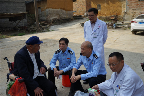 此次活动是一附院组建的广西巡回医疗队第三次赴上林县开展巡回医疗工作。根据当地的实际需求,医疗队由一附院外科、骨科、儿科、风湿病科、眼科、皮肤科等多学科的8名专家组成。义诊现场设在六联村村卫生所。义诊通过设立健康咨询、免费测量血压、现场讲解、现场诊治、免费发放药品等多种形式,对常见病、慢性病的咨询、诊断和一般治疗,普及医学常识和健康知识,引导群众科学就医。活动充分发挥中医药诊疗特色,就广大人民群众在养生保健、疾病防治等方面进行解答与宣传,倡导健康生活方式,让当地的群众积极主动参与其中,不少群众纷纷表示,能在家门口就享受到专家的服务,十分高兴和满意。一附院仙葫院区党总支书记张高炼、东葛院区儿科主任李伟伟与广西国税局纪检书记黄吉就、广西国税局驻六联村第一书记王家辉、长联村第一书记练德仁一同入户走访了村里的贫困老人,为他们检查身体,并免费赠送药品。本次义诊活动共义诊200人次,免费发放院自制药剂230多份,价值3200余元,活动受到广大群众一致好评。
