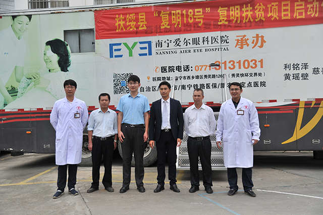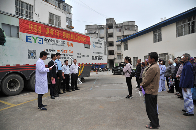 2017年11月10日下午,瑞康医院空港院区与南宁市爱尔眼科共同开展的“健康扶贫—复明工程”项目正式启动。扶绥县副县长张虎严,县残联理事长陈承龙,县卫计局副局长凌绍华,爱尔眼科院长助理李远,院区副院长朱志华以及参与复明健康的相关科室医疗人员、患者及患者家属参加了启动仪式。仪式由朱副院长主持。