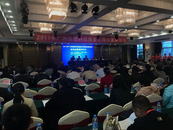 2017年11月27-28日,由自治区教育厅和北海市人民政府主办,桂林电子科技大学承办的“2017年广西高校科技服务北海新发展活动”在北海市隆重举行,来自区内50多所高校、北海市政府相关部门与企业代表近200人出席,我校副校长冷静带领学校科技处、成果转化与社会服务处和一附院专家博士团等一行9人参加。