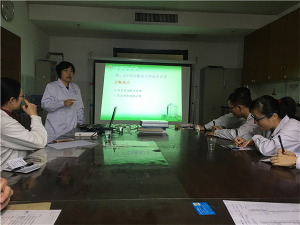 12月2日上午,桂平市中医院肾病科早早布置好活动现场,活动先由广西名中医史伟教授进行“系统性红斑狼疮诊断及诊断评析”的专题讲座,史伟教授从西医角度深入浅出的讲解了系统性红斑狼疮的诊断及治疗,还分享其从中医分阶段治疗狼疮性肾炎的临床经验,长达近2小时的讲座提高了与会医护人员对系统性红斑狼疮的认识。接着史伟教授团队参与到该科举办的第二届阳光肾友会,谢永祥副主任医师对参与活动的慢性肾脏病患者进行“慢性肾脏病血液透析面面观”的专题讲座,用通俗易懂的语言详细陈述了肾脏的功能、肾衰竭的治疗及血液透析的各种治疗模式,讲座后还进行有奖问答,并且还对参会的血液透析患者进行抽奖活动,气氛热烈。会后史伟教授带领其团队对该科的疑难危重患者进行床边查房,指导诊治,深受患者及医护人员的欢迎及感谢。