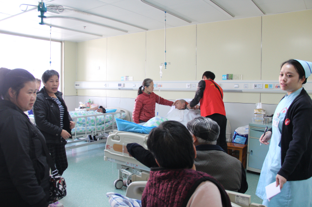 志愿者一走进病房,就受到了患者及家属的欢迎,“小伙子,要帮我剪得美一点。”,“姑娘,你就帮我老伴剪得最短,越精神越好。”,“爷爷您就好好地坐在这里等,一会儿志愿者帮隔壁床剪完了就轮到您了。”护士长也忙着安排闻声起床赶来的隔壁病房患者耐心等待,义剪现场其乐融融。在神经内科一区的病房里,正在剪头发的李大爷开心地告诉我们“你们去年的义剪,我也得到了帮助,你们给我剪了头发,今年我来住院,又碰到你们来帮剪头发,真的太感谢瑞康医院了。”