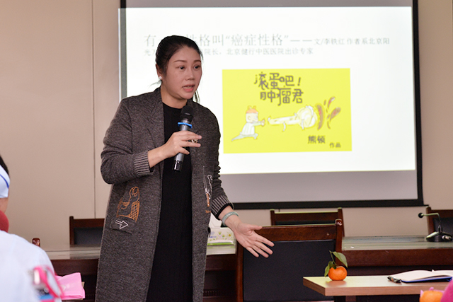刘子询老师从电影《滚蛋吧!肿瘤君》为切入点,通过真实案例以及统计数据,深入分析了人们的性格和心态与罹患肿瘤疾病之间的关系,剖析了大家压力的来源,指出应对工作压力首先要培养内心对工作的正确认知态度,并配合一些外部方法合理释放。刘老师还针对医护人员如何与肿瘤患者进行有效沟通的方式方法给出了自己的指导意见。