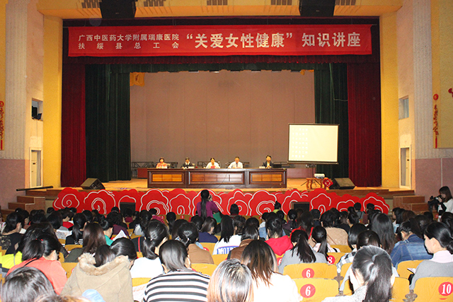 为庆祝第108个“三八”国际劳动妇女节,3月7日上午,扶绥县总工会与瑞康医院空港院区在扶绥县剧场开展了“关爱女性健康”为主题的女性健康保健知识讲座,为扶绥县女职工们上了一堂理论与实践相结合的医学保健课。
