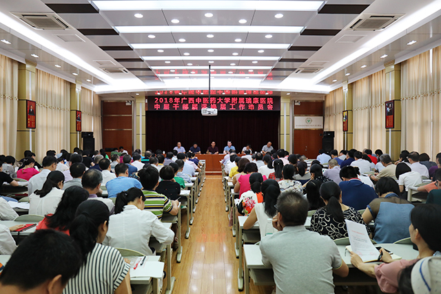 6月19日下午,瑞康医院在B座10楼会议室召开2018年医院中层干部届满换届工作动员大会,医院院长唐友明,党委书记高宏君,副院长庞刚、韦思尊,党委副书记、纪委书记黄建民,副院长宋策出席会议,全院中层干部参加大会。