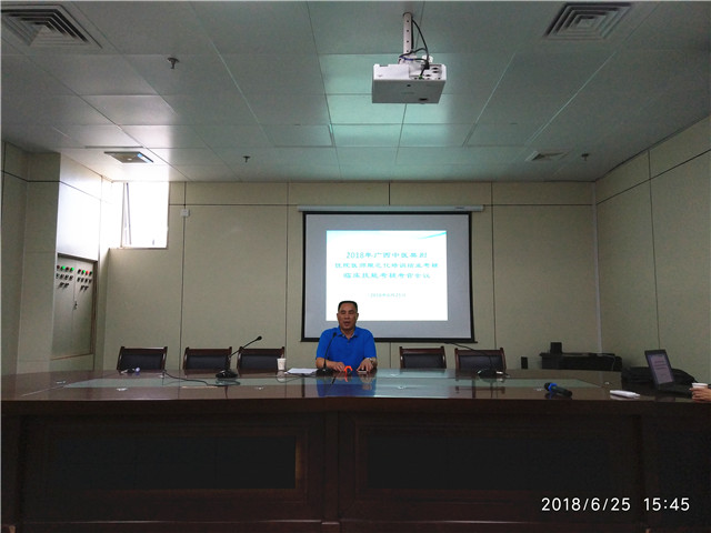 6月25日下午,瑞康医院2018年住培考官培训会在A座7楼第二会议室举行。外院考官、院内考官及考务人员近60人参加了会议。院长唐友明出席会议并讲话,党委副书记、副院长陈日兰主持本次会议并对即将迎来的2018级中医住培学员进点进行了工作部署。朱英、吴发胜、欧阳国林三名临床科室主任分别对住培考官进行了技能考核方面的专题培训。