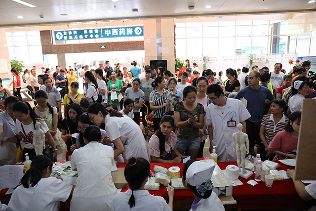 活动现场,各科室医务人员或站着、或坐着、或蹲着,针对群众的需求对不同穴位进行贴敷,并耐心地解答他们的疑惑,对相关疾病提出了日常预防、保健及治疗建议。