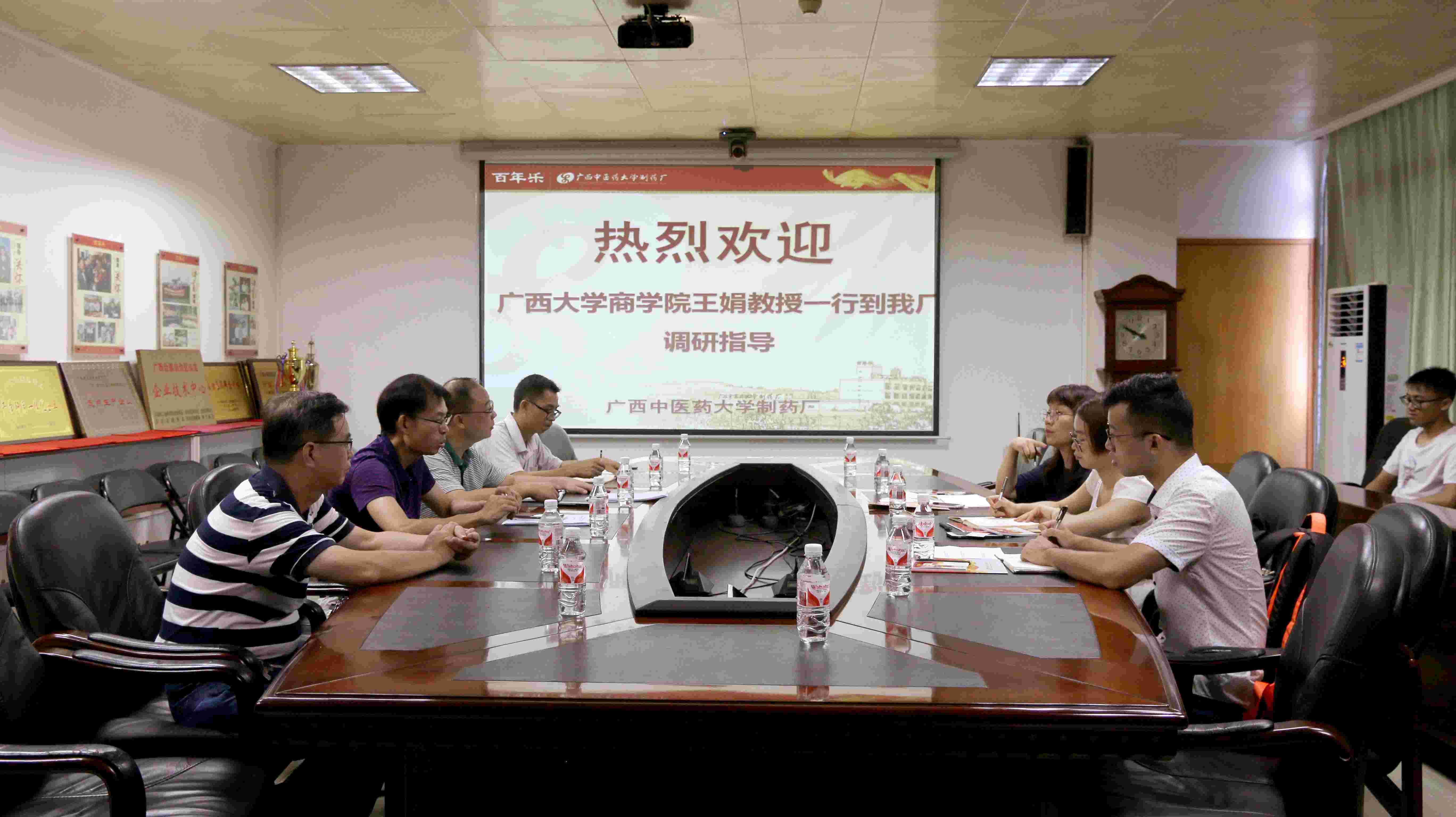 7月18日上午,广西大学商学院王娟教授一行3人来我厂调研。在厂办公楼六楼会议室,制药厂党委书记、厂长何天富,副厂长陈洪涛以及相关职能部门人员参加了调研座谈会。