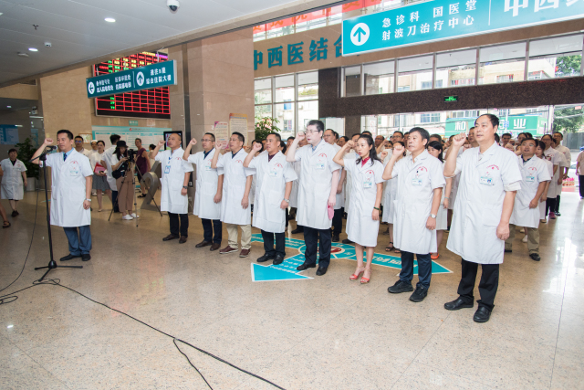医院全体领导和各科医生代表一起重温了医学生誓词,“我决心竭尽全力除人类之病痛,助健康之完美……”时刻提醒自己“救死扶伤、维护健康”的神圣职责……