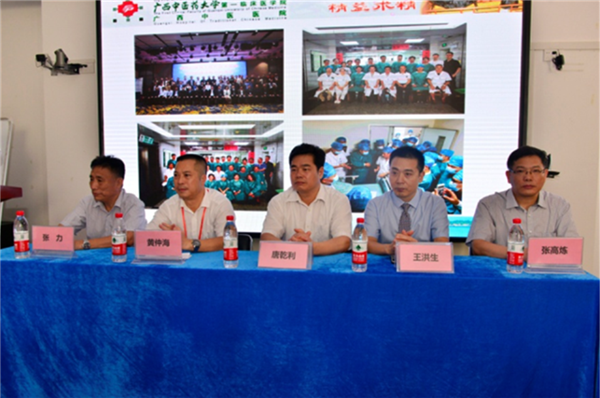 9月21日上午,广西创面修复专科联盟在一附院成功举办了“2018广西创面修复专科联盟学术活动暨授牌仪式”。出席本次活动的领导和嘉宾有中国中西结合学会烧伤专业委员会主任委员、广西中西医结合学会烧伤与创面修复专业委员会名誉主任委员、右江民族医学院副校长、博士生导师唐乾利教授;北京荣祥再生医学研究所副所长、再生生命医疗技术委员会副主任委员、糖尿病足首席专家王洪生研究员;一附院副院长黄仲海、张高炼,创面修复周围血管科主任张力教授等。参加此联盟并签署协议的单位有29家,挂牌的联盟单位有36家,有意向进一步合作的单位14家,本次到会代表近60人。