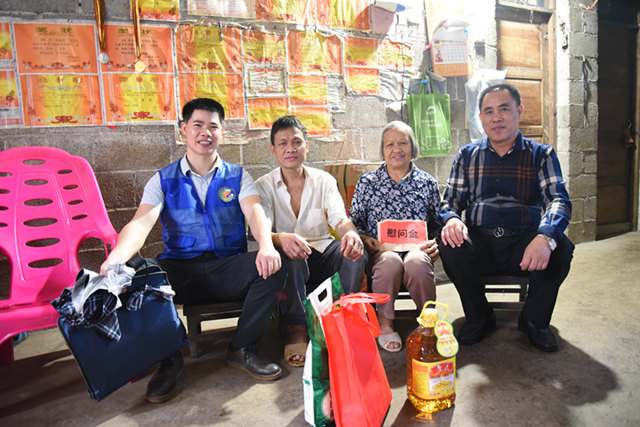 随后,帮扶干部带着大米、花生油等生活物品走进帮扶结对的贫困人员家中,与结对的贫困群众深入交流,详细了解帮扶家庭的生活境况及身体情况,仔细询问在生活上遇到的困难,得知每年的补助经费都及时发放后,交代他们遇到困难及时地与帮扶干部联系,同时叮嘱他们一定要保重身体,鼓励他们克服困难,早日过上幸福美满的生活。