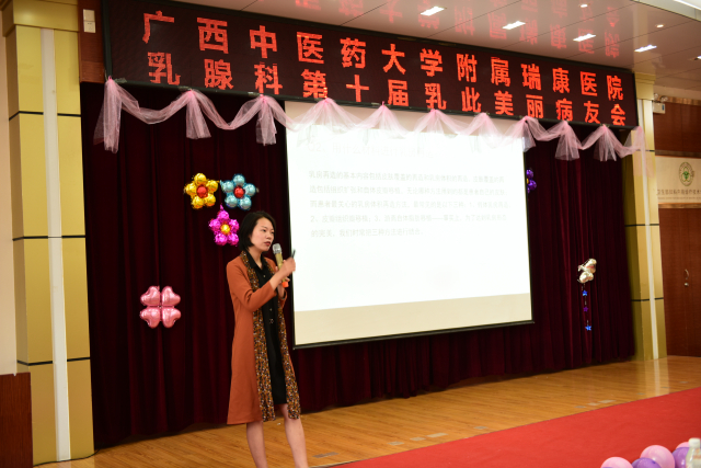 本次病友会还邀请到广西民族医院烧伤整形科科主任李琳教授作健康讲座,着重为病友人答疑什么样的病人、什么时候适合进行什么样的乳腺整形手术。对于注重形体美的病友,是一种福音,会上许多病友萌生了想要进行乳腺重建的意愿。