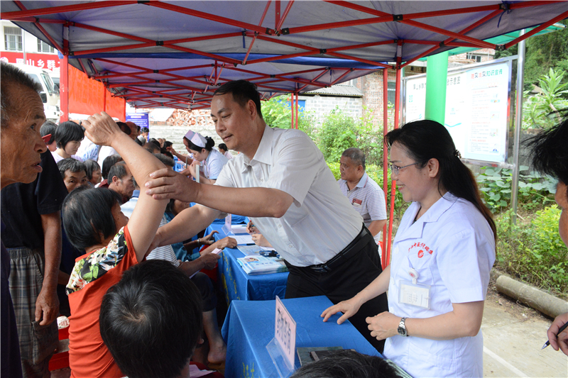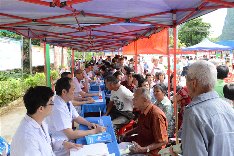 为积极响应党和政府打赢脱贫攻坚战三年行动的号召,助力广西精准脱贫,近日,广西壮族自治区红十字会携手星空彩票老版本下载附属瑞康医院,于南宁市隆安县屏山乡举办大型义诊活动。瑞康医院副院长陈锋带领老年病科、肝病内科、脊柱外科、胸心血管外科、关节与运动医学科、泌尿外科、儿科、药学部等多位资深专家以及医疗服务部相关负责人,利用自身中西医结合的优势,切实服务隆安人民,用实际行动弘扬“人道、博爱、奉献”的红十字精神。