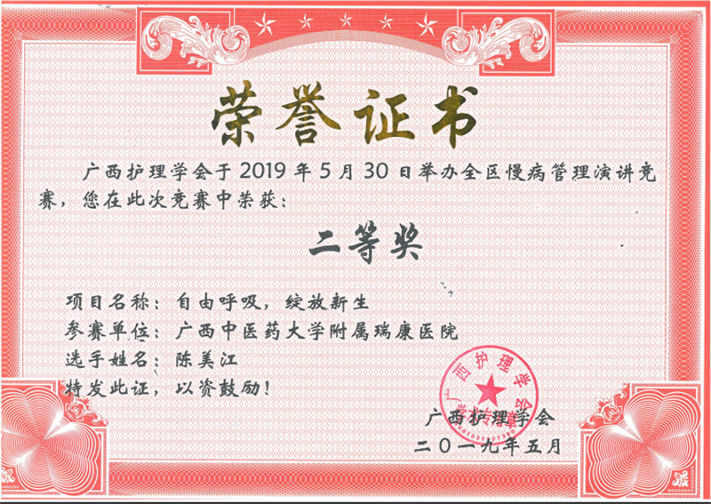 经过激烈角逐,瑞康医院心内一区护长黎燕演讲的《冠心病PCI术患者的慢病管理》以总分第一的成绩荣获一等奖,呼吸内科副护长陈美江演讲的《自由呼吸,绽放新生》荣获二等奖。