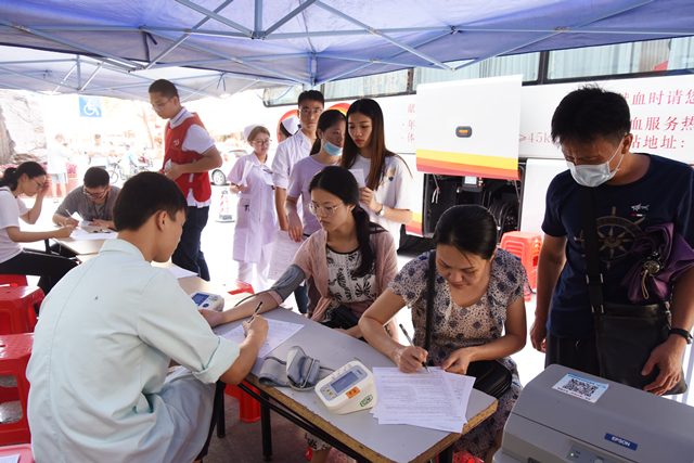 献血现场,医院职工或是同窗共往,或是姊妹相携,有的刚抢修完医疗设备,有的刚下夜班,有的献血后又回到手术台上。常年献血的急诊科主任欧阳国林说:“献血对个人的好处比较多,比如说简单的一个体检,血液上必须合格才能采用,同时促进人体血液新陈代谢,增强免疫力和抵抗力等等,同时也是非常好的爱心传递。”