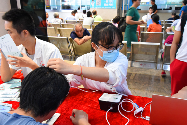 加班、熬夜、遗传……猝不及防脱发就成了“当代人”的热度关联词,特别是饮食、环境及各方面压力等因素所导致的脱发发病率显著升高。在第二届全国护发日来临之际,为了加强公众对头发护理的重视与认知,8月13日,附属瑞康医院在医院A座一楼大厅举行2019年护发日义诊活动。