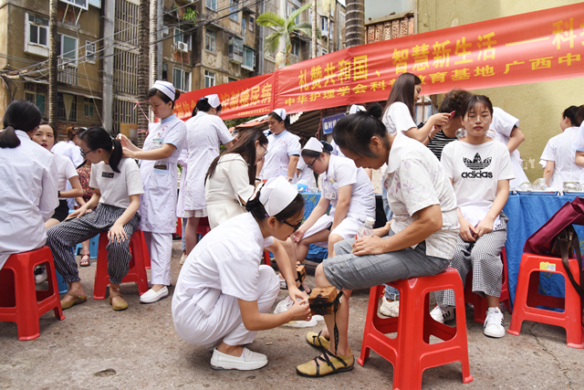 为大力普及科学知识,弘扬科学精神,传播健康生活方式,提高全民健康科学素养,促进科学普及与科技创新协同发展,9月3日,附属瑞康医院护理部携手南城分院走进南棉社区开展主题为“礼赞共和国、智慧新生活——科技促民生 科普惠健康”的大型科普义诊活动。广西护理学会理事长杨连招,附属瑞康医院院长唐友明、副院长陈锋参加本次活动。