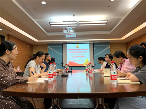 10月13日,为了进一步推进“不忘初心、牢记使命”主题教育工作,一附院内科第八党支部与右江民族医学院附属医院肾内科党支部两个五星支部结对开展“传承红色基因,勇担责任使命”专题学习研讨活动。
