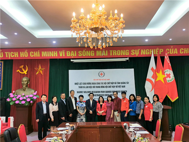 为加强广西红十字会与东盟各国红十字会的合作与交流,10月15日,广西红十字会常务副会长冯国平率队到越南红十字总会访问。附属瑞康医院长期致力于公益事业,2003年至今共救助了6000多名先心病患儿,是广西最大的先心救助平台。医院胸心血管外科主任杨柳山受邀一同前往越南,受到越南红十字总会主席阮氏春秋的热情接待。