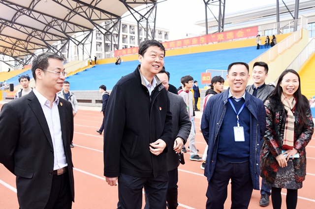 12月23日,2020届广西中医药类高校毕业生就业双向选择洽谈会在学校仙葫校区体育场举行。星空彩票老版本下载党委书记尤剑鹏亲临现场指导,附属瑞康医院院长唐友明,党委书记高宏君,党委副书记、副院长陈日兰带领相关职能部门负责人到“双选会”现场,了解附属瑞康医院招聘情况,并与毕业生进行亲切交谈。