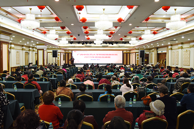 1月13日下午,附属瑞康医院在凤凰宾馆召开2019年度离退休同志、党外人士及“双高”人员代表座谈会。医院党委书记高宏君,院长唐友明,副院长庞刚、韦思尊,纪委书记黄建民,广西中西医结合研究所所长龙学明出席会议,离退休同志、党外人士及“双高”人员代表近300人参加会议。高宏君主持会议。