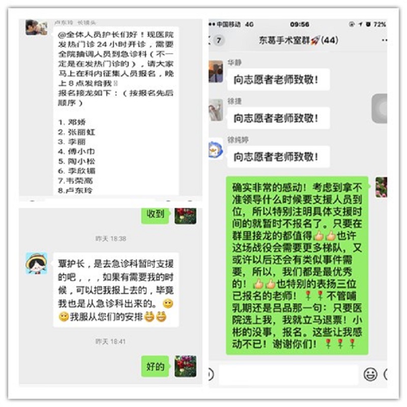 为了应对这场没有硝烟的战争,一附院多次召开专题会议全面部署防控工作,尽管急诊科大部分护理人员已经自愿取消了春节休假返回工作岗位,但人力仍然不足。为此,护理部在全院发出自愿支援发热门诊工作的通知,短短两个小时内共有26位同志报名参加。经过综合考量,最终抽调了肿瘤一区农彩芬、肾内科李丽、儿科莫映霞、脾胃病二区邓智伶、心内二区岑思蓓、推拿科张希6位护理人员作为第一批志愿者参与到新型冠状病毒感染的肺炎的战斗中,并在大年三十这个特殊的日子里按时到岗,以实际行动履行守护生命的神圣职责。