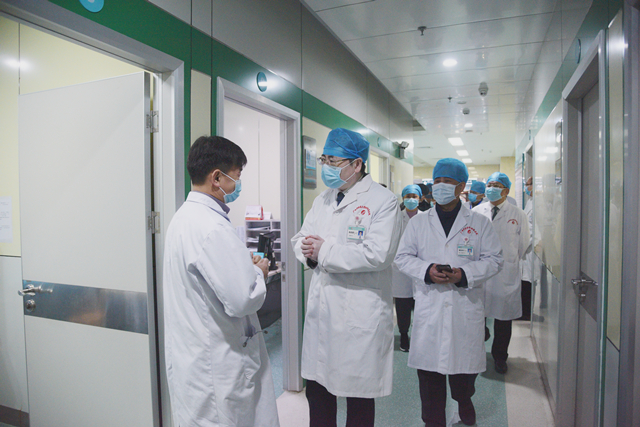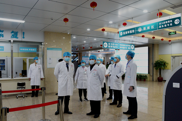 大年初五,附属瑞康医院门诊开诊第一天,院领导巡查医院各诊区